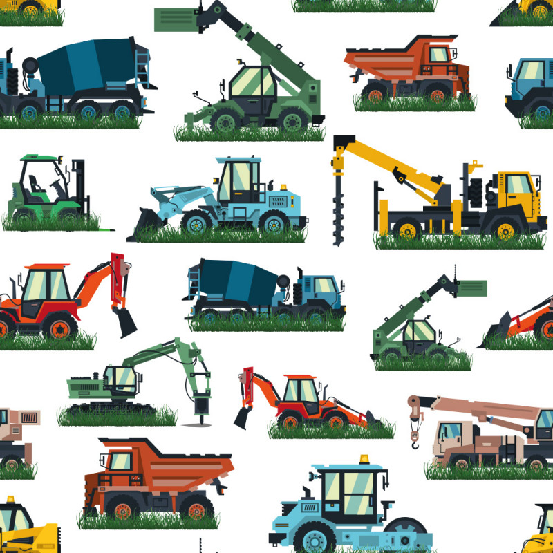 Oj, oj, oj vilken lycka. Här är Alla favoriter uppradade. Wohoo och hurra för arbetsfordonen! Betongblandarbilen är strax över 8cm. Digitaltryckt bomullstrikå av hög kvalitet. Passar bra till klädsömnad mm.