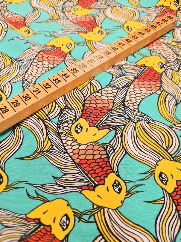[vc_row][vc_column][vc_column_text woodmart_inline=”no” text_larger=”no”]Svensk design med hög kvalité. Enkelt och okonstlat. Galet härliga färger på både fiskar och vattnet. Ett trikåtyg i en typisk tights/t-shirt-kvalite, med en stretch som gör att det lämpar sig både till tightare och lösare plagg. Det är mjukt, följsamt och framförallt väldigt bekvämt.[/vc_column_text][/vc_column][/vc_row]
