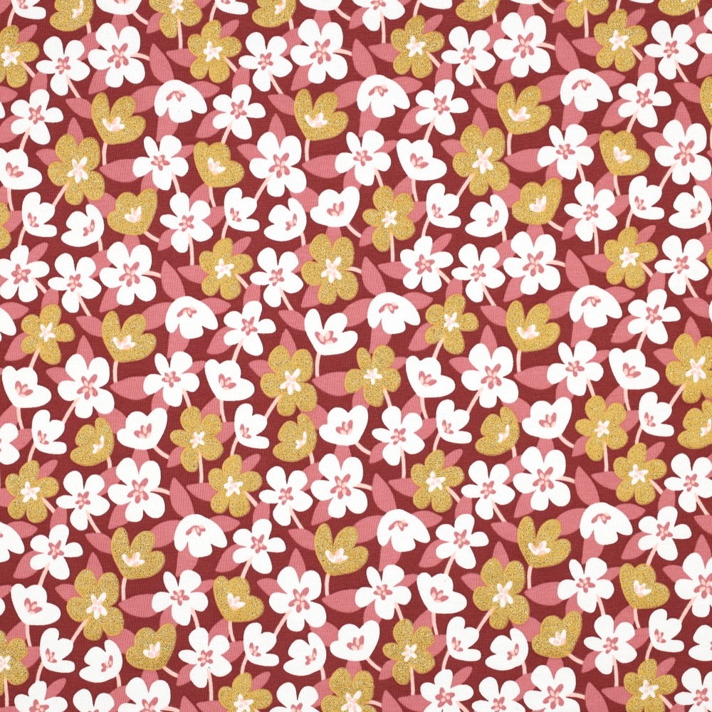Om du behöver lite mer glitter i din tillvaro och dessutom lite blommigt, ja men då är ju detta tyget för dig. Största blomman är ca 3cm. Trikåtyg i en typisk tights/t-shirt-kvalite, med en stretch som gör att det lämpar sig både till tightare och lösare plagg. Det är mjukt, följsamt och framförallt väldigt bekvämt.