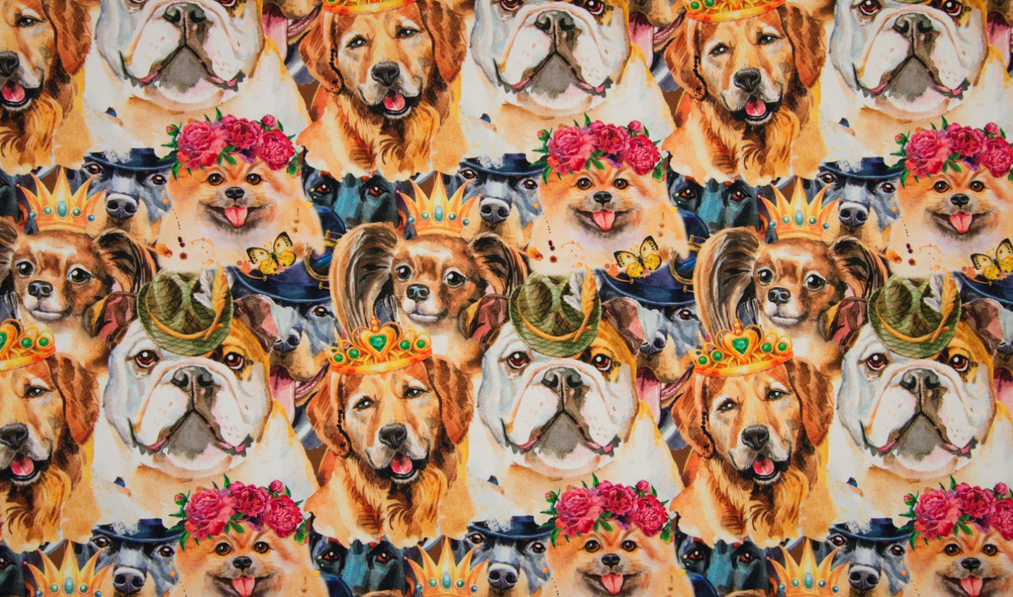 [vc_row][vc_column][vc_column_text text_larger=”no”]Här radar de upp sig, hundarna med sina tjusiga huvudbonader. – Ja, ni är så fina så! Ett trikåtyg i en typisk tights/t-shirt-kvalite, med en stretch som gör att det lämpar sig både till tightare och lösare plagg. Det är mjukt, följsamt och framförallt väldigt bekvämt.[/vc_column_text][/vc_column][/vc_row]