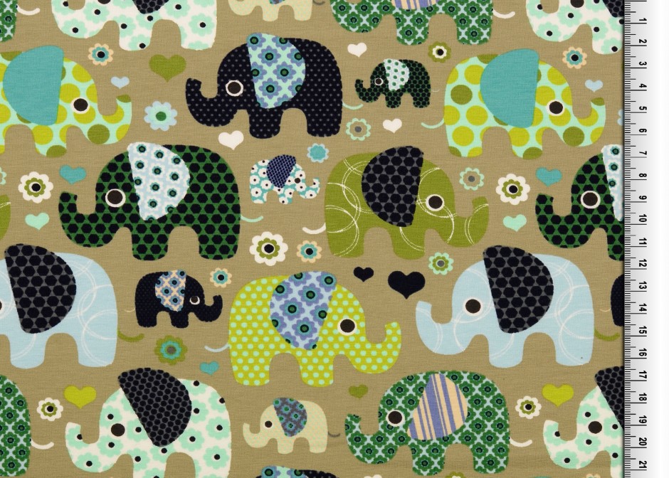 Djur, Mönstrad bomullstrikå, Retro, Trikåtyger