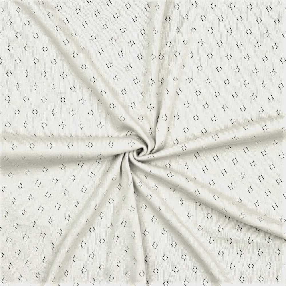 Det här mjuka, drömmiga tyget får en verkligen att tänka på ”förr i tiden”. Det vackra hålmönstret, att det inte är något annat än bomull i; mycket trevligt! Ett material som verkligen kommer till sin rätt som underkläder, löst sittande överdelar, filtar etc.