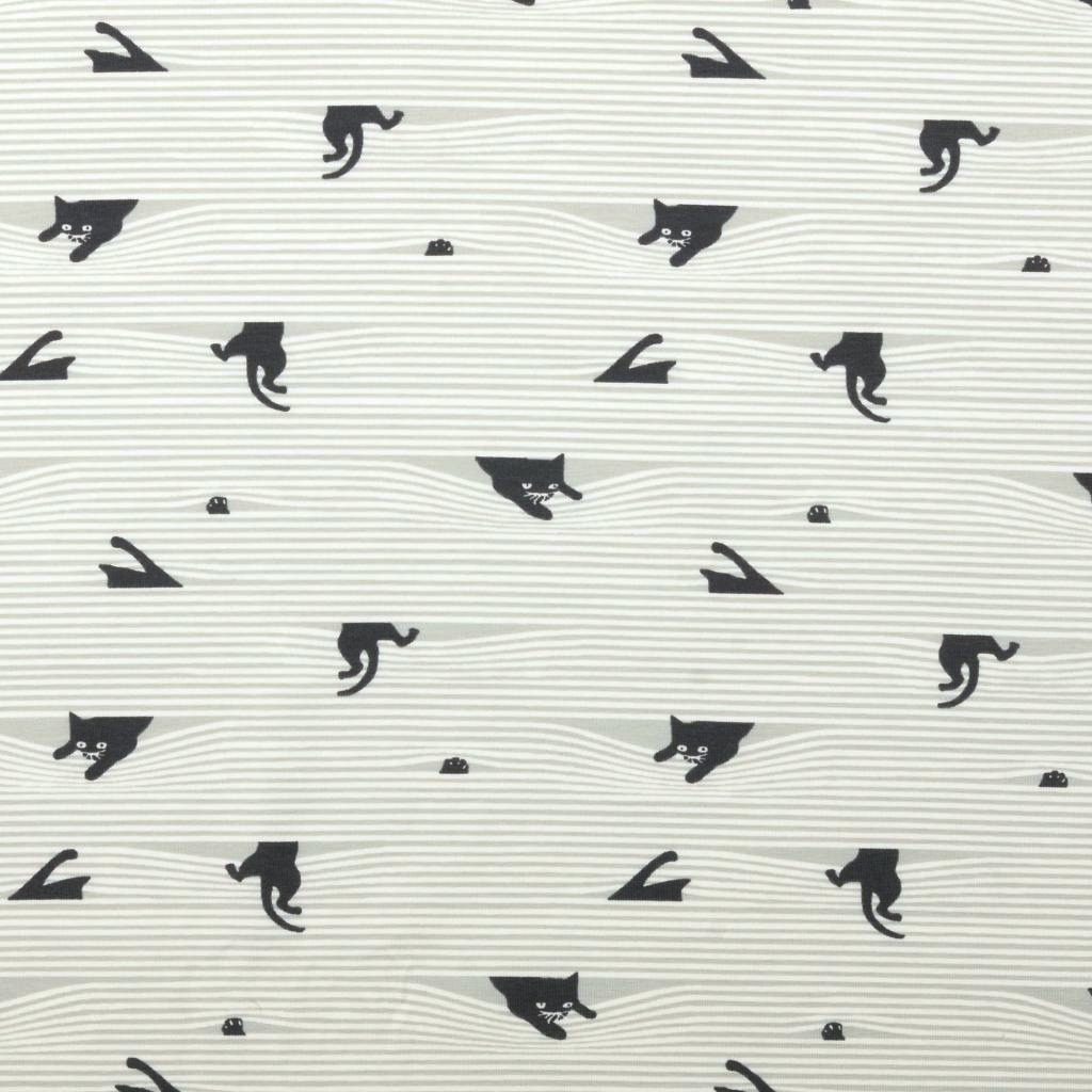 Här var det katter i sin allra busigaste högform. Katten som kikar fram är 2cm hög. Trikåtyg i en typisk tights/t-shirt-kvalite, med en stretch som gör att det lämpar sig både till tightare och lösare plagg. Det är mjukt, följsamt och framförallt väldigt bekvämt.