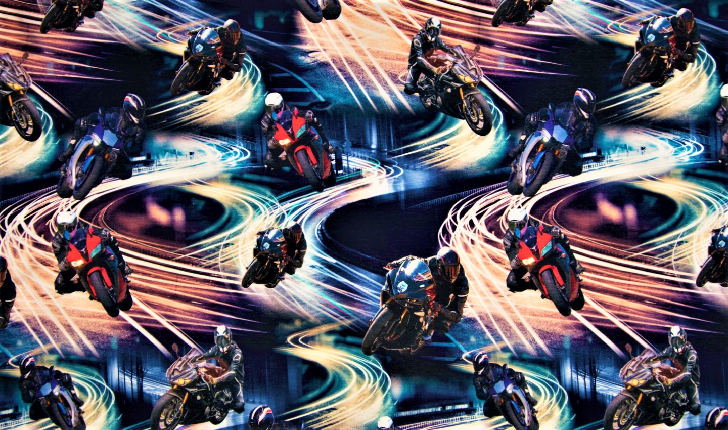 [vc_row][vc_column][vc_column_text text_larger=”no” woodmart_inline=”no”]Undra hur det känns att blåsa fram i 250 km/h med knät trygga 10mm ifrån backen? Läskigt. Färgerna i detta tryck känns nästan upplysta. Wow! Digitaltryckt bomullstrikå av hög kvalitet. Passar bra till klädsömnad mm.[/vc_column_text][/vc_column][/vc_row]