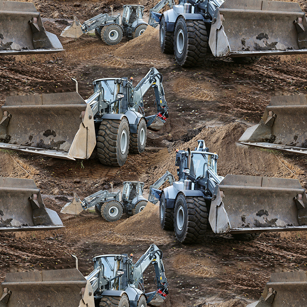 Hjullastaren jobbar på som tusan. Men inte en svettdroppe, så långt ögat kan nå! Digitaltryckt bomullstrikå av hög kvalitet. Passar bra till klädsömnad mm.