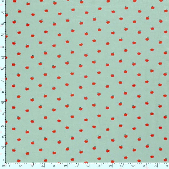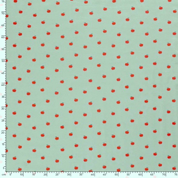 [vc_row][vc_column][vc_column_text text_larger=”no” woodmart_inline=”no”]Här var det äpplen åt folket i en skön retrokänsla och i all sin enkelhet. Frukterna är ca 1,5cm stora. Ett trikåtyg i en typisk tights/t-shirt-kvalite, med en stretch som gör att det lämpar sig både till tightare och lösare plagg. Det är mjukt, följsamt och framförallt väldigt bekvämt.[/vc_column_text][/vc_column][/vc_row]