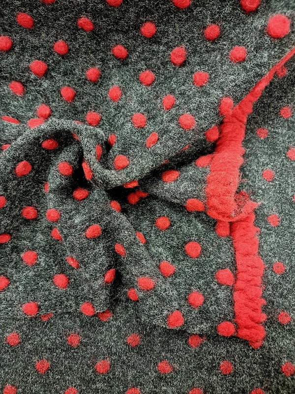 [vc_row][vc_column][vc_column_text woodmart_inline=”no” text_larger=”no”]En lite kraftigare stickad och valkad ullvara med ljuvliga pluppar. Valkad ull är samma som kokt ull och betyder helt enkelt att ullen efter att den stickats krympts ihop med hjälp av fukt och värme. Denna process gör att ullen både blir tätare och starkare. Eftersom den är stickad blir den automatiskt lite stretchig, men inte så pass stretchig att den funkar till tighta plagg. Detta trevliga tyg kommer absolut bäst till din rätt i form av en kappa, en kofta, en mössa, en bylsig tröja etc.[/vc_column_text][/vc_column][/vc_row]