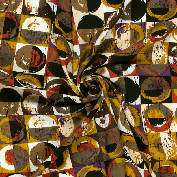 Enkla former, varma färger och hög trivselfaktor. Bra grejer helt enkelt. Ett lite tunnare, riktigt mjukt, fladdrigt vävt viskosetyg med bra fall. Tänk dig blusen, vida byxan, byxdressen, kaftanen, långskjortan, klänningen etc.