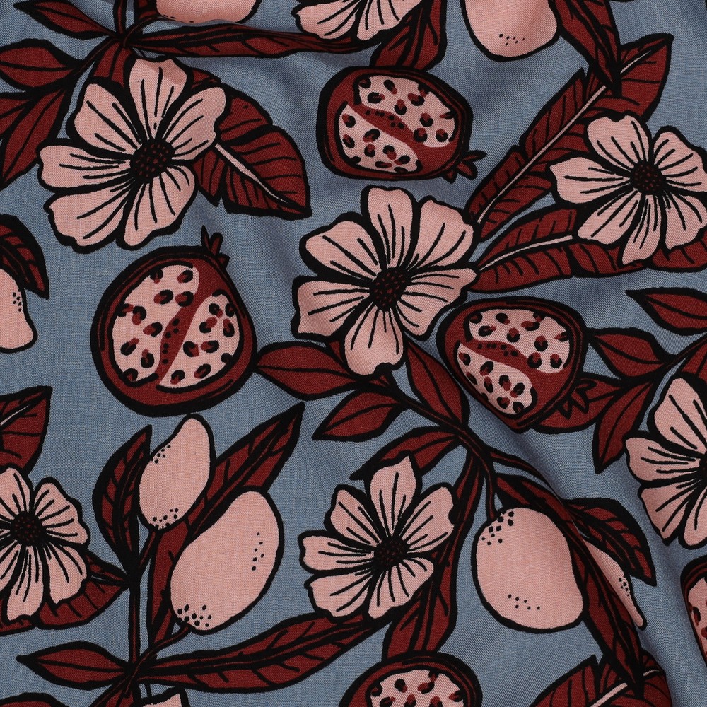En otroligt vacker men också lite lätt knasig färgkombo i grönskande former. Längsta bladet är ca 7cm. Bra grejer helt enkelt. Ett lite tunnare, riktigt mjukt, fladdrigt vävt viskosetyg med bra fall. Tänk dig blusen, vida byxan, byxdressen, kaftanen, långskjortan, klänningen etc.