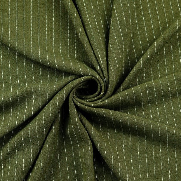 Mjukt, följsamt, behagligt, tungt fall, hm, något mer? Ja, vacker struktur och en lite tvättad, nött känsla. Och mer då? Ja, jo men den är randig – en smal liten rand med 1cm mellanrum. Dröm om skjortan, tunikan, vida brallan, kjolen, klänningen etc.
