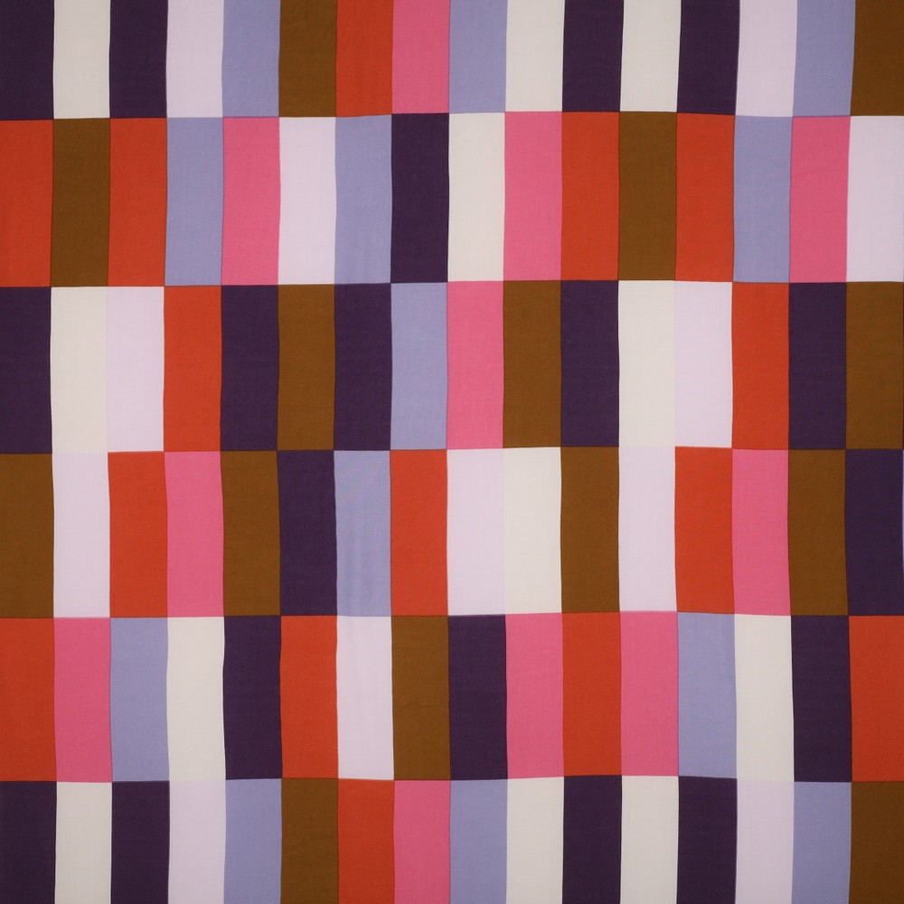 Det är grafiskt, det är enkelt och det är lagom knäppa färger. Vi tackar Nerida Hansen för ännu ett av hennes vackra tyger. Plattorna är 12cm långa. En riktigt fladdrig vävd viskos med tungt och fint fall. Tänk dig en skjorta eller en klänning eller en byxa eller en blus eller ett par skjorts eller, ja du fattar.