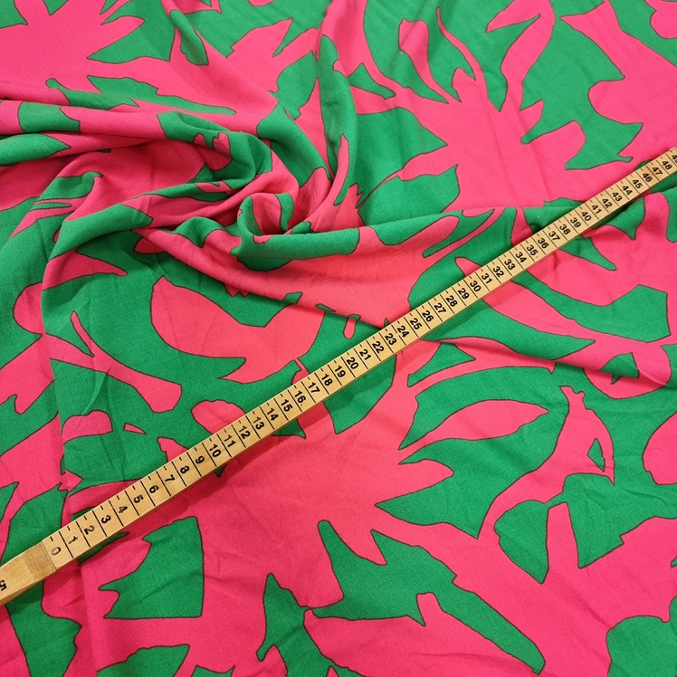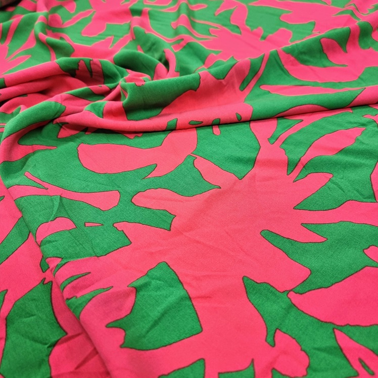 VISKOSPOPLIN STÄNKTA TECKEN GRÖN/CERISE FG 4