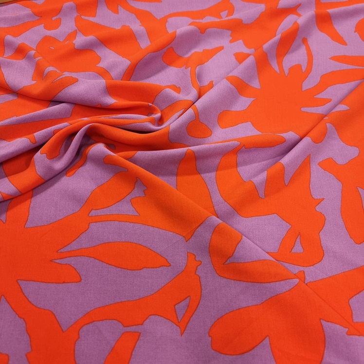 VISKOSPOPLIN STÄNKTA TECKEN RÖDORANGE/LILA FG 9