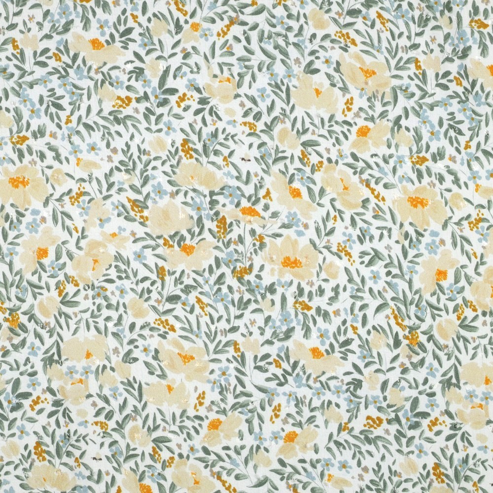 Viskosvoilé Brisblomster off white/grön fg 1